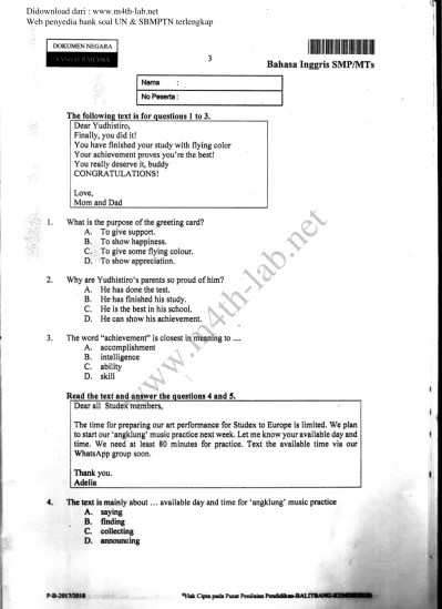 Kunci jawaban soal un ipa smp 2017 kunci masa depan . Jadi skala yang digunakan adalah 1:250 (opsi jawaban yang tersedia yang memungkinkan), meskipun sebenarnya skala ini tidak ideal, karena denah terlalu pas. Top pdf un 2018 smp ipa p1 www.m4th lab.net dikompilasi oleh 123dok.com. Soal ukk / uas matematika kelas x xi + kunci jawaban soal mat ukk xi ipa. Pada artikel kali ini, akan dipaparkan kunci jawaban dari soal uji kompetensi mata pelajaran ipa untuk siswa kelas 10 smp mts pada bab 1 . Download soal dan pembahasan ksm mts 2018 bidang matematika tingkat. Disusun dengan huruf times new roman, 12 pt. Kunci jawaban soal un wwwm4th labnet dunia sekolah from www.duniasekolah.id.